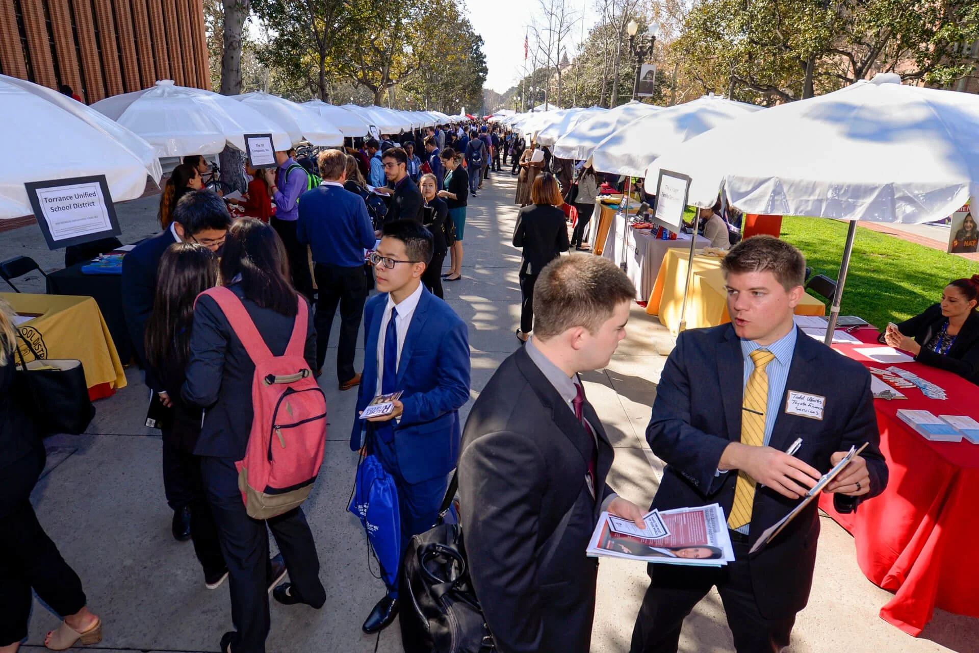 This career fair is hosting 103 employers! Some big-name companies include Amazon, Deloitte, and Guess! I also spotted employers in the education industry (Hawthorne School District, LAUSD), non-profits (Holding Hands Inc, Changeist), and medical industry (Harvard MedTech, USC Pathology). Whatever career pathway you are on, the career fair has something for you. Before visiting the booths, research a handful of companies that you are interested in. By getting to know the company’s mission and history, employers are more likely to notice you.
