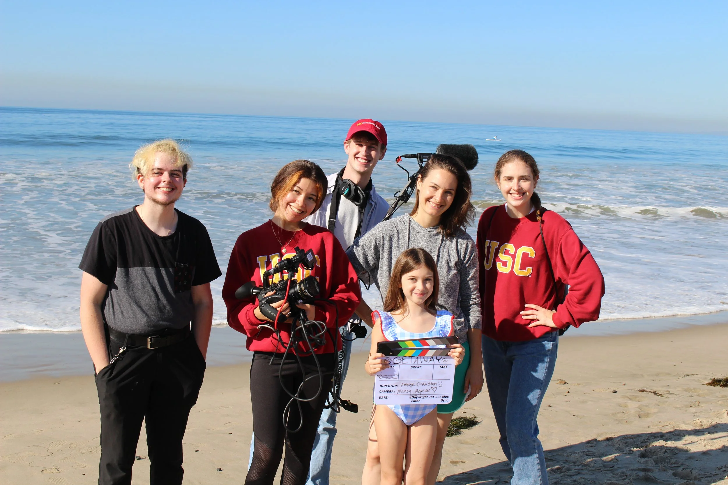 Me and the cast and crew at Will Rogers Beach for a Junior Thesis Film Project