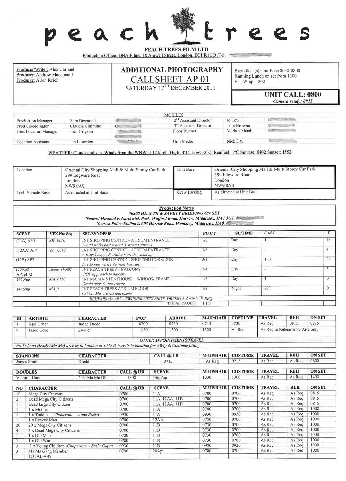 Call Sheet Example!