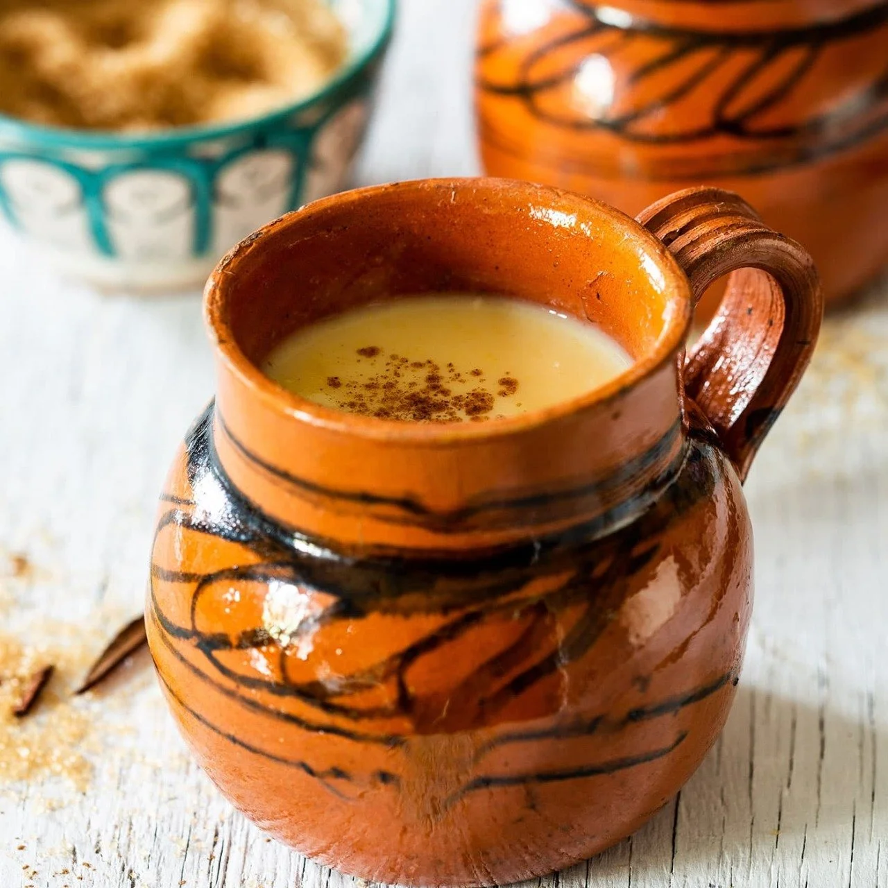A hot drink ranging from thin to thick consistency made from cornflour, rice, oatmeal or wheat. It’s also made with cinnamon and piloncillo. It’s optional to add vanilla, chocolate or fruit.