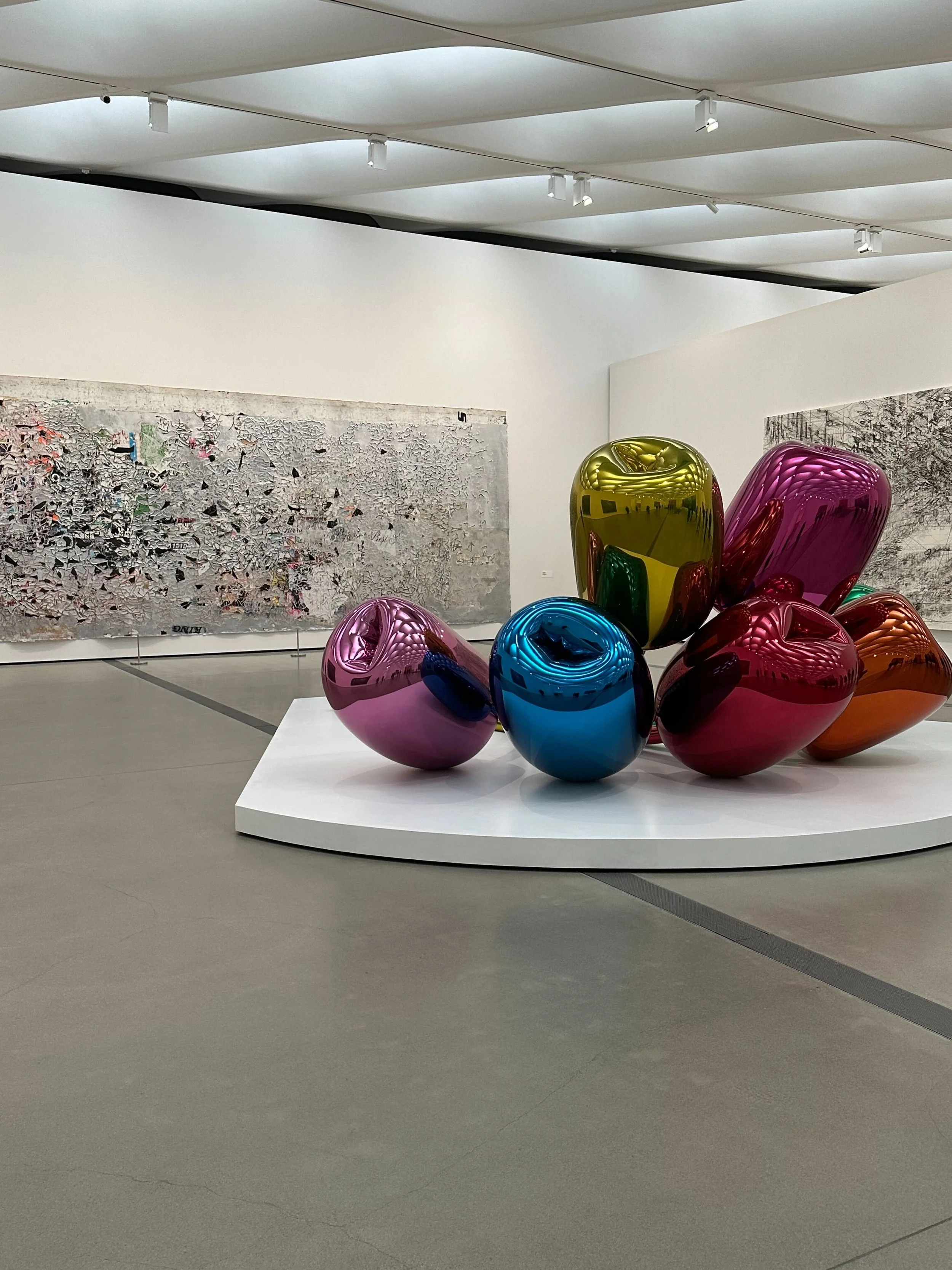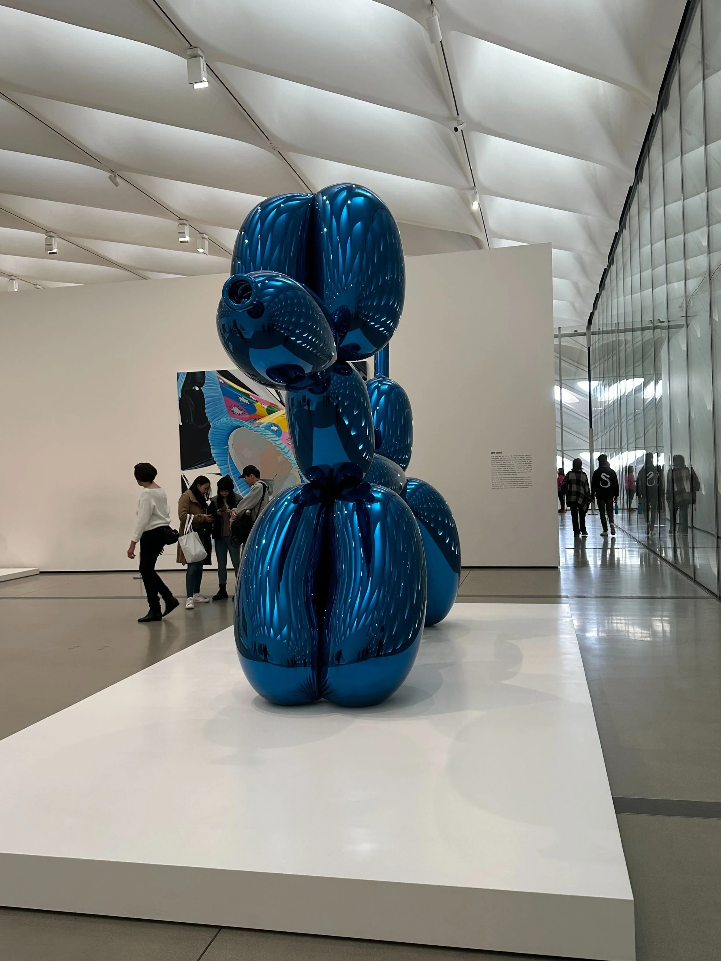 Another popular highlight of the museum are the larger than life works by Jeff Koons. While one of his balloon sculptures is located at the top of the escalator, the majority of his candy colored creations are presented together in an open room that includes paintings, stainless steel sculptures, and more traditional porcelain sculptures (notably an extraordinarily creepy rendering of Michael Jackson). The variety of mediums and subjects, from party hat paintings to a giant balloon animal sculpture to a silver bunny sculpture, are bonded by a central theme with the website noting they, “... memorialize the rituals, icons, and images surrounding birthdays, holidays, and other party occasions.” This is one of the most colorful, exciting, and whimsical parts of the museum and, because of that, it can often be one of the more crowded spaces.