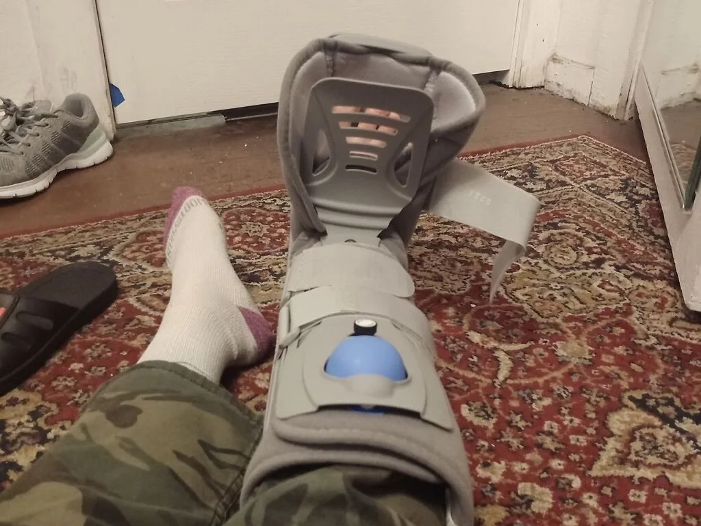 My foot in a boot cast.