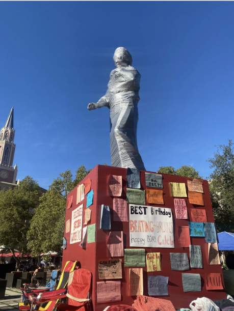 During my first Rivalry Week, I remember passing through the USC Village and seeing students bundled up trying to stay warm under the wrapped-up Hecuba statue. Their signs were hilarious (including one that read “Jake Gyllenhall is a Bruin” which was extremely timely for the Red (Taylor’s Version) era). As a newbie to campus, I envied the group – it looked like they were having so much fun! I was excited by the spirit of the Helenes, and I wanted to be a part of the tradition.